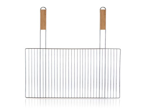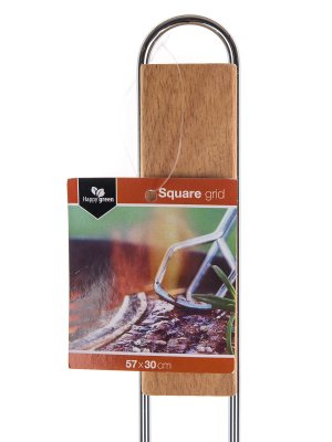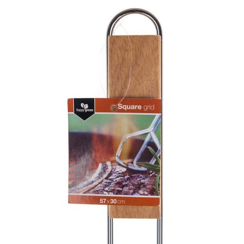 Hranatý grilovací rošt BBQ s drevenými rukoväťami využijete pre ľahké grilovanie mäsa, zeleniny a pod. Je vhodný aj pre murované záhradné grily. Rošt je vyrobený z pochrómovanej ocele, počet drôtov na rošte je 34 kusov.