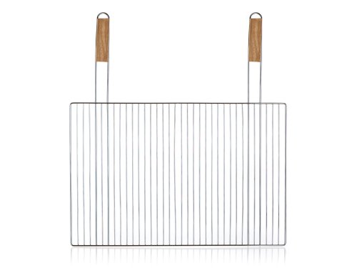 Hranatý grilovací rošt BBQ s drevenými rukoväťami využijete pre ľahké grilovanie mäsa, zeleniny a pod. Je vhodný aj pre murované záhradné grily. Rošt je vyrobený z pochrómovanej ocele, počet drôtov na rošte je 34 kusov.