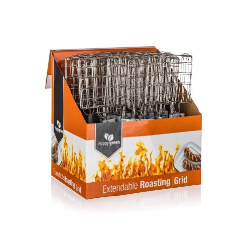 Teleskopický opekací rošt je vhodný napr. na opekanie hamburgerov, klobások, zeleniny a iných pokrmov pripravovaných nad ohňom či grilom. Rošt je opatrený rukoväťou pre príjemnejšie uchopenie. Celkovú dĺžku je možné nastaviť podľa potreby od 27 až do cca 67 cm.