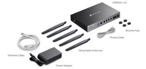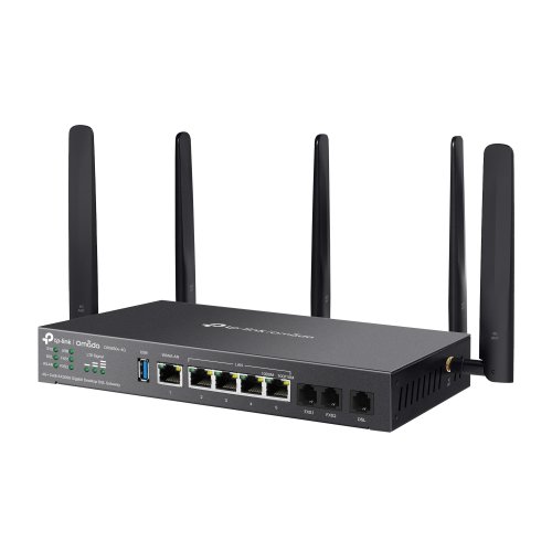 Router TP-Link DR3650v-4G kombinuje Wi-Fi 6 AX3000 , 4G+ Cat6 pripojenie a širokú škálu portov pre maximálnu flexibilitu. Ponúka rýchlosť až 2402 Mbps na 5 GHz a 574 Mbps na 2,4 GHz , podporu VDSL2 35b 350 Mbps a 2× nano SIM sloty pre LTE zálohu. Ideálne riešenie pre stabilné pripojenie v domácnostiach aj firmách s podporou VPN a centrálnou správou cez Omada SDN .