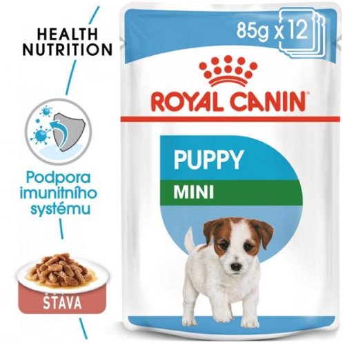 Rast je dôležitou fázou v živote psa, obdobím fyzických zmien a nových objavov. Keď vaše šteňa rastie, je dôležité podávať mu stravu, ktorá podporí jeho zdravý vývoj. Zloženie kapsičky Royal Canin Mini Puppy Chunks in Gravy pre šteňatá malých plemien je vytvorené tak, aby uspokojovalo všetky nutričné potreby šteniat vo veku 2-10 mesiacov, ktoré budú v dospelosti vážiť do 10 kg. Prirodzená obranyschopnosť šteňaťa sa stále vyvíja, a preto toto vrecko obsahuje exkluzívny komplex antioxidantov, vrátane vitamínu E, ktorý podporuje nezrelý imunitný systém. Krmivo Royal Canin Mini Puppy Chunks in Gravy obsahuje aj prospešné živiny, ktoré podporujú celkové zdravie tráviaceho traktu, ktorého súčasťou je aj rovnováha črevnej mikroflóry. Šteňatá malých plemien dosiahnu svoju konečnú veľkosť veľmi rýchlo. To treba brať do úvahy a krmivom im dodávať dostatok energie. Krmivo Royal Canin Mini Puppy Chunks in Gravy má preto veľmi vysoký obsah energie, ktorý tieto nároky spĺňa. Zloženie: mäso a živočíšne produkty, oleje a tuky, obilniny, vedľajšie produkty rastlinného pôvodu, minerálne látky, kvasnice. Analytické zložky: proteín 8 %, obsah tuku 6 %, hrubý popol 1,9 %, hrubá vláknina 1 %, vlhkosť 79,2 %, vitamín E 150 mg/kg, vitamín C 100 mg/kg, omega-3 mastná kyselina (DHA) 0,045 %. Nutričné doplnkové látky na 1 kg: vitamín D 3 140 MJ, železo (3b103) 5 mg, jód (3b202) 0,3 mg, meď (3b405, 3b406) 2,4 mg, mangán (3b502, 3b503, b3506) 3b605, 3b606) 15 mg. Technologické doplnkové látky na 1 kg: klinoptilolit sedimentárneho pôvodu 2 g Kŕmny návod: