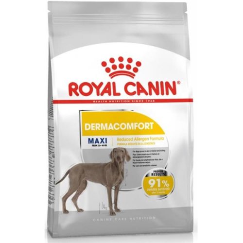 Kompletné krmivo pre dospelých a starnúcich psov malých plemien (hmotnosť 26 až 44 kg) - pre psov náchylných na podráždenie a svrbenie kože - nad 10 mesiacov. Podráždenie pokožky je najčastejším dôvodom, prečo musí pes k veterinárovi. Starajte sa o svojho psa tým, že mu poskytnete vysoko kvalitné živiny, ktoré sú špeciálne vyvážené, aby sa starali a upokojili citlivú pokožku. Podráždená pokožka často vedie k nadmernému škrabaniu, ktorým si váš pes môže kožu poškodiť alebo dokonca spôsobiť infekciu. ROYAL CANIN ® Dermacomfort Maxi je krmivo upravené na mieru s aktívnymi živinami, ktoré podporujú zdravú pokožku vášho psa. Krmivo je obohatené o mastné kyseliny omega 3 a omega 6 a pomáha upokojiť pokožku, ktorá je vďaka tomu menej citlivá na dráždivé látky v okolitom prostredí. Tieto živiny tiež pomáhajú udržiavať srsť vášho psa zdravú. Granule pre psov ROYAL CANIN ® Dermacomfort Maxi, vhodné pre psov s hmotnosťou od 26 do 44 kg, obsahujú špeciálne navrhnuté granule, ktoré dokonale vyhovujú zubom vášho psa. Program výživy Dermacomfort je dostupný ako chrumkavé granule a chutné paštéty v kapsičke. Obe sú nutrične kompletné a dokonale sa dopĺňajú. Prečo nevyskúšať paštétu ako doplnok granúl? Po 2 mesiacoch užívania tohto krmiva si 91% majiteľov psov všimlo zlepšenie. To znamená, že výsledky tohto krmiva sú preukázaným úspechom. Zloženie: Ryža, pšeničný glutén ( LIP .: bielkoviny vybrané pre svoju veľmi vysokú stráviteľnosť), pšenica, živočíšne tuky, kukuričný glutén, kukurica, lúpaný ovos, minerálne látky, hydrolyzovaná hydinová pečeň, sójový olej, repné a DHA), ľanové semená (zdroj omegy 3), frukto-oligosacharidy, olej z boráku lekárskeho (zdroj kyseliny gama-linolénovej), výťažok z nechtíka lekárskeho (zdroj luteínu). Nutričné doplnkové látky: Vitamín A: 29000 oi, Vitamín D3: 800 oi, E1 (Železo): 43 mg, E2 (Jód): 4,3 mg, E4 (Meď): 13 mg, E5 (Mangan): 56 mg, E6 (Zinok): 168 mg, E8 (Selén): 0,09 mg - Technologické doplnkové látky: Klinoptilolit sedimentárneho pôvodu: 5 g - Konzervanty - Antioxidanty.