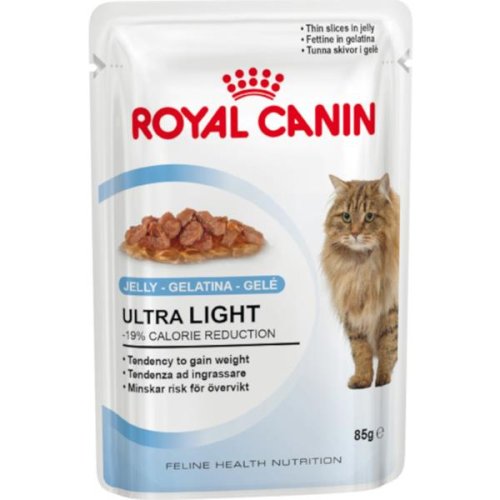 Vyvážené krmivo pre dospelé mačky, ktoré majú sklon k nadváhe, bohaté na L-karnitín na podporu spaľovania tukov s nízkym obsahom kalórií. Šťavnaté kúsky v chutnom želé. Zloženie: mäso a vedľajšie živočíšne produkty, rastlinné bielkovinové extrakty, rastlinné vedľajšie produkty, minerálne látky, obilniny, cukor. Analytické zložky: proteín 11%, obsah tuku 2%, hrubý popol 1,4%, hrubá vláknina 1,2%, vlhkosť 82,5%.