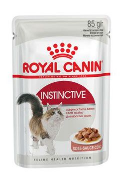 Kapsička Royal Canin Instinctive je vhodná pre vyberavé mačky staršie ako 1 rok. Najlepšie krmivo je k ničomu, pokiaľ ho mačka neje. Dospelé mačky uprednostňujú špecifický makronutričný profil. Kombinácia vitamínov, minerálov a aminokyselín robí toto krmivo vysoko stráviteľné a nutrične vyvážené. Krmivo pomáha mačke udržať si ideálnu hmotnosť, podporuje zdravie močového systému a obsahuje optimálny podiel tuku na zabezpečenie energetického prísunu. Zmes vlákniny a bielkovín navyše prispieva k pocitu sýtosti. Zloženie: mäso a živočíšne produkty, ryby a výrobky z rýb, bielkovinové extrakty rastlinného pôvodu, obilniny, minerálne látky, vedľajšie produkty rastlinného pôvodu, kvasnice. Analytické zložky: proteín 11,8 %, hrubá vláknina 0,8 %, obsah tuku 2,5 %, hrubý popol 1,6 %, vlhkosť 79,5 %. Nutričné doplnkové látky na 1 kg: vitamín D 3 30 MJ, železo (3b103) 3 mg, jód (3b202) 0,29 mg, meď (3b405, 3b406) 2,4 mg, mangán (3b502, 3b503, 3b50 mg 3b605, 3b606) 9 mg. Kŕmny návod: