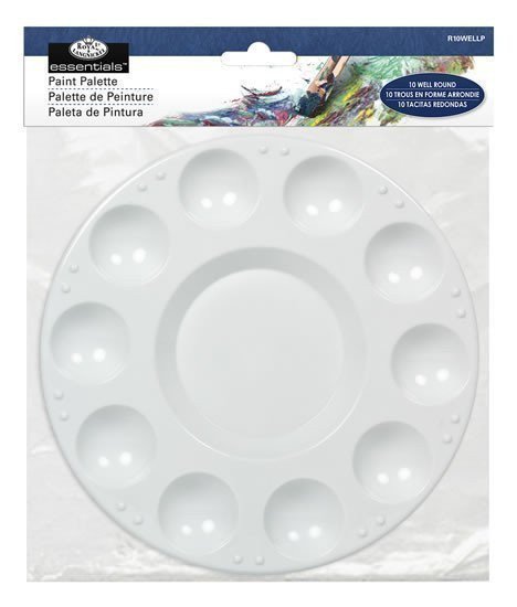 Maliarska paleta je základnou pomôckou, ktorá nesmie chýbať vo výbave žiadneho umelca. Paleta z plastu od prestížnej výtvarnej značky Royal Langnickel je ideálna na nanášanie rôznych druhov farieb, má okrúhly tvar a skladá sa z 10 kalíškov na vytlačenie farby v rovnakej veľkosti a jedného veľkého kalíška na miešanie farieb. Rozmery palety: 17,5 x 17,5 cm. Rozmery kalíškov: malé kalíšky: 3 cm šírka x 0,8 cm hĺbka, veľký kalíšok: 8,5 cm šírka x cca 1 cm hĺbka.