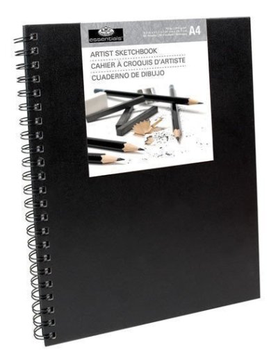 Skicák so špirálovou väzbou v doskách. Využiteľný rozmer papiera A4, 80 listov s gramážou 96 g/m2.