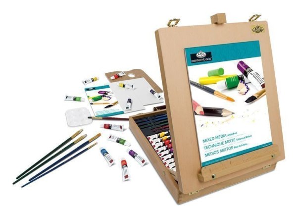Táto sada obsahuje 48 kusov výtvarných umeleckých potrieb, ktoré sú ideálne pre začiatočníkov, študentov alebo umelcov. Obsahuje široký sortiment ceruziek, pasteliek a farieb. Odkladací kufrík sa premení na robustný stolný stojan. Sada obsahuje: 12 akrylových farieb (12 ml), 12 olejových farieb (12 ml), 12 akvarelových farieb (12 ml), 2 umelecké plátna, 2 ks zlatých taklonových štetcov, 2 ks bielych taklonových štetcov, 2 ks čiernych taklonových štetcov, plastová paleta so šiestimi jamkami, 1 drevená paleta, 1 ks skicár A4 pre rôzne techniky, 1 stojan / kufrík