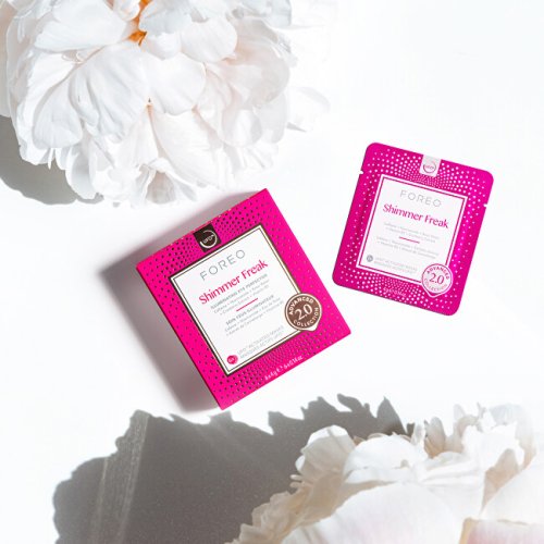 Shimmer freak 2.0 je rozjasňujúca kozmetická maska na oči s obsahom kofeínu. Je navrhnutá špeciálne na osvieženie jemných očných kontúr a na oživený a svieži vzhľad. Je ideálny pre unavené oči s tmavými kruhmi a opuchmi. Maska kombinuje modrú a červenú LED terapiu, chladenie a hĺbkové pulzácie T-Sonic™ s 93% zložiek prírodného pôvodu na rozjasnenie oblasti pod očami bez upchávania pórov. Antioxidačné účinky kofeínu, brusnicového extraktu a ružovej vody posilňujú kožné tkanivo a bojujú proti opuchom, zatiaľ čo niacínamid svojimi účinkami proti starnutiu pleti prináša nový život.
