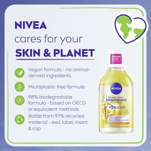Dvojfázová rozjasňujúca micelárna voda účinné čistí a ľahko odstraňuje aj vodeodolný make-up. Voda obsahuje 5% séra s komplexom aminokyselín a vitamínmi C a E a preukázateľne rozjasňuje pleť už počas čistenia. Dodáva pleti energiu, prebúdza unavenú pleť a zároveň hydratuje.