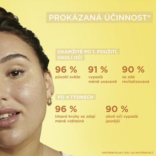 Očná maska pre viditeľne jasnejšie a sviežejšie očné okolie. Obsahuje 3% glycerínu, vitamín C a kyselinu hyalurónovú, ktoré spoločne hydratujú, rozjasňujú a redukujú tmavé kruhy pod očami. Ideálne ako rýchle riešenie pre unavený vzhľad.