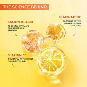 Rozjasňujúca pleťová esencia s obsahom vitamínu C, glycerínu, niaciniamidu a kyseliny salicylovej pre hĺbkovú hydratáciu a jasnejšiu a žiarivejšiu pleť.