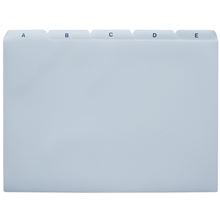 Deliace listy do kartoték vyrobené zo silného plastu, s čiernou potlačou Register: A - Z (25 kusov), ohybný Formát: A4 na šírku Farba: šedá Hrúbka: 250 mic Rozmery: 22,5 x 29,7 cm
