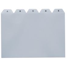 Deliace listy do kartoték vyrobené zo silného plastu, s čiernou potlačou Register: AZ, 25-dielny, listy ohybné, šedé Formát: A5 na šírku Farba: šedá Hrúbka: 250 mic Rozmery: 16,0 x 21,0 cm