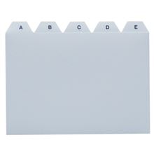 Deliace listy do kartoték vyrobené zo silného plastu, s čiernou potlačou Register AZ, 25-dielny, listy ohybné, šedé Formát: A6 na šírku Farba: šedá Hrúbka: 250 mic Rozmery: 11,75 x 14,8 cm