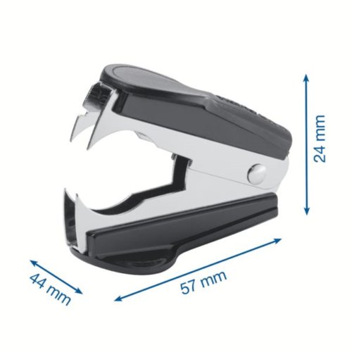 Malý a efektívny vyberač drôtikov v čiernej farbe S plastovou rukoväťou pre jednoduché použitie Oceľové čeľuste v pochrómovanej úprave zaisťujú vysokú odolnosť Na všetky druhy kancelárskych zošívacích drôtikov …