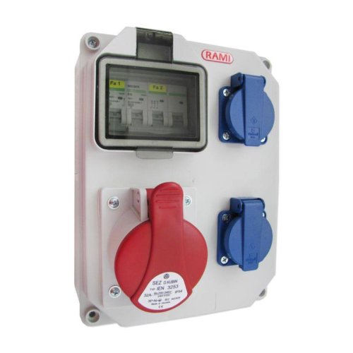• ďalší popis: Zásuvková rozvodnica obsahuje: - 2x zásuvka 230V - 1x zásuvka 400V/32A (IEN3253) - 1x istič 16B/1 - 1x istič 32B/3