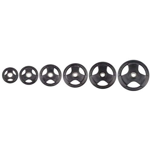 Oceľové olympijské kotúče s vonkajšou gumovou vrstvou Merco Rubber sú vhodné na všetky typy olympijských tyčí s priemerom nakladacej časti 50 mm. Ich pogumovaná konštrukcia znižuje pri dopade hlučnosť a zvyšuje ich odolnosť. Kotúče Rubber sú vyrobené v praktickom dizajne s otvormi. Vďaka tomu je s kotúčmi jednoduchšia manipulácia a môžete s nimi cvičiť aj samostatne bez tyče. Uvedená cena platí pre 1 kus. - hmotnosť - vonkajší priemer - šírka madla - 1,25 kg - 16 cm - 2 cm - 2,5 kg - 20 cm - 2 cm - 5 kg - 24 cm - 2,5 cm - 10 kg - 32 kg - 3, 5 cm - 15 kg - 35,5 cm - 4 cm - 20 kg - 40 cm - 4 cm - 25 kg - 43 cm - 4 cm