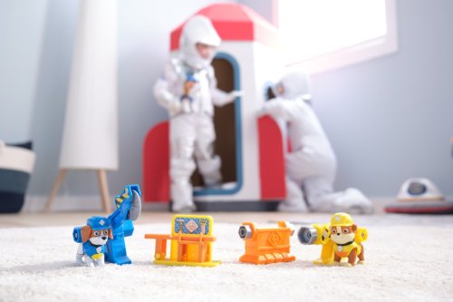 Priprav sa na poriadne „Haf-haf stavanie“ so svojim obľúbeným tlapkáčom Rubblem a jeho parťákom Wheelerom v sade figúrok Šteňatá s náradím! Táto dynamická dvojka je vybavená vstavanými batohmi s náradím, ktoré sa aktivujú stlačením figúrok dole. Malí stavitelia si užijú realistickú stavebnú zábavu s funkčnou vŕtačkou a kotúčovou pílou, doplnenú o zábavné stavebné príslušenstvo. Otočením gombíka a zdvihni alebo spusti výstražné značenie pomocou vŕtačky a použi kotúčovú pílu na rozpolenie pracovného stola – ako v skutočnej stolárskej dielni! Tento set podporuje kreatívnu hru a umožňuje deťom pripojiť sa k Rubbleovi a Wheelerovi pri ich dobrodružstvách na stavbe. Pre ešte viac možností hrania je možné svet staviteľských dobrodružstiev rozšíriť o ďalšie hračky z radu Rubble a jeho tím – stavebné vozidlá, figúrky a herné sety s kinetickým pieskom. Tieto stavebné, zmyslové a plyšové hračky sú navrhnuté tak, aby deťom aj rodičom priniesli spoločné chvíle plné tvorenia, hrania a učenia. (každý produkt sa predáva samostatne.)