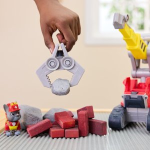 Predstavujeme Chargerov megasilný žeriav, stavebné vozidlo plné funkcií, ktoré ponúka napínavú hru podporujúcu fantáziu. Táto stavebná súprava dáva deťom priestor na kreativitu s približne 6,5 cm veľkou figúrkou Chargera a jeho impozantným stavebným žeriavom, ktorý je vybavený dvoma odnímateľnými nástrojmi: úchopovými kliešťami a zbíjačkou. Nástroje je možné ľahko pripnúť aj odopnúť, takže si deti môžu vytvárať vlastné stavebné dobrodružstvo, napríklad aj v piesku, a to s hračkami zo sveta Tlapkovej patroly. Tieto zmyslovo podnetné hračky sú skvelou voľbou k narodeninám, na Vianoce alebo na akúkoľvek dobrodružnú príležitosť. Deti si môžu vytvárať svoje vlastné hrdinské príbehy a pridať sa k Rubbleovi a jeho tímu pri zachraňovaní dňa. Znovu môžu prežívať obľúbené okamihy zo série Rubble & Crew zo sveta Tlapkové patroly a byť pripravení na úplne nové stavebné dobrodružstvá s plyšákmi Rubble & Crew, akčnými figúrkami, stavebnicami a nákladnými autami, ktoré im zaistia nekonečné príbehy inšpirované seriálom.