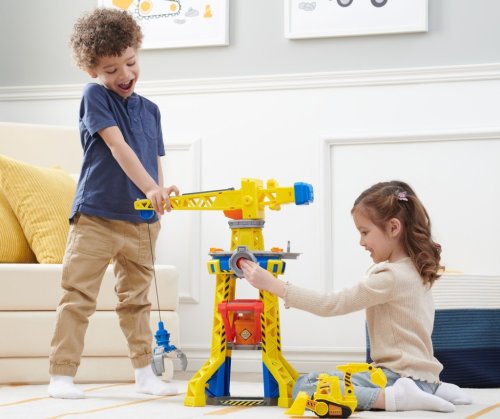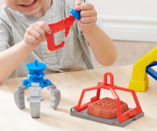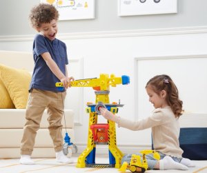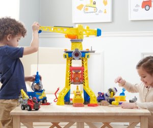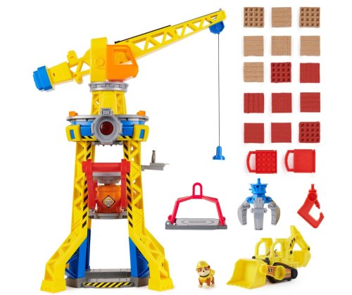 Pripravte sa na poriadny stavebný projekt so svojim obľúbeným šteniatkom z Tlapkovej patroly Rubblem a jeho buldozérom s funkčnými stavebnými nástrojmi v hernej sade Rubble & Crew interaktívny žeriav! Žeriav vyzerá presne ako v seriáli a obsahuje zábavné detské stavebné stroje, ako je otočný žeriav s prídavným drapákom, ktorý môžu deti použiť na zdvíhanie vecí hore a dole! Súčasťou sady je aj systém na tvarovanie kinetického piesku Build-It, ktorý umožňuje naplniť dve obojstranné formy buď červeným, alebo hnedým kinetickým pieskom a potom zatiahnutím za obrovskú červenú páku spustiť nárazník a vytvoriť vlastné stavebné bloky, ktoré je možné umiestniť na základnú plošinu! Akonáhle sú vaše bloky pripravené, umiestnite Rubbla do výťahu a vyvezte ho až na vrchol, do ovládacieho modulu žeriava. Potom pomocou žeriava zdvihnite bloky a presuňte ich tam, kam chcete! Na záver stlačte obrovské červené tlačidlo v prednej časti veže, ktoré slúži na rozsvietenie svetiel a prehrávanie zvukov a hlášok, ktoré poznáte zo seriálu! Ešte viac zábavy zo sveta seriálu Rubble & Crew vám zaistí stavebné nákladiaky, figúrky, sady s kinetickým pieskom Build-it alebo sada s dielňou, ktoré vám umožnia ďalej rozšíriť svoje stavenisko so stavebnými strojmi (predávajú sa zvlášť)! Priveďte seriál Rubble & Crew k životu pomocou hernej sady s interaktívnym žeriavom!