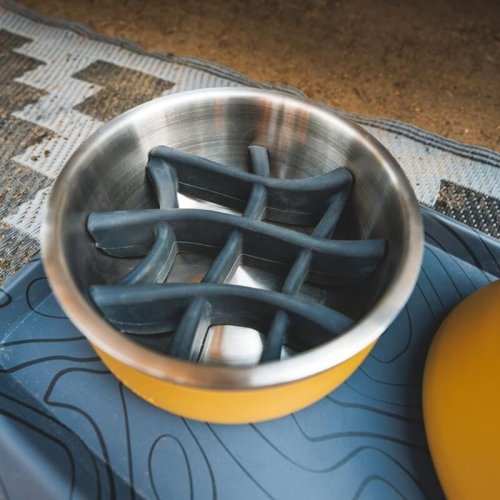 RUFFWEAR Basecamp Slow Feeder Insert je príslušenstvo, ktoré pomáha rýchlym jedákom spomaliť a vychutnať si svoje krmivo. Tento praktický doplnok je vyrobený zo silikónu bezpečného pre potraviny. Jednoducho sa zatlačí do misky Basecamp™, kam perfektne zapadne. Dizajn je inšpirovaný prírodou, vychádza zo zamotaných koreňov stromov, a ponúka samostatné oddiely, ktoré podporujú pomalšie kŕmenie. Po použití jednoducho vyberte a vložte do horného koša umývačky riadu pre ľahkú údržbu.