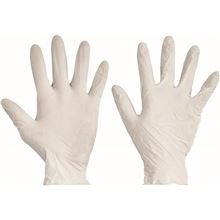 • Jednorazové latexové púdrované rukavice vhodné na krátkodobý styk s potravinami