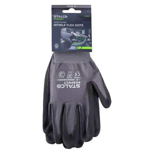 Rukavice nylonové NITRILE FLEX DOTS, STALCO PERFECT, veľ. 9