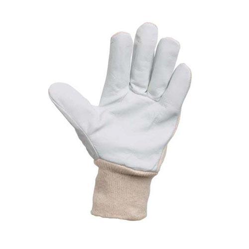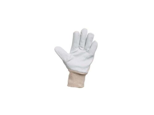 Dlaň z jemnej lícovej kože, chrbát z bielej bavlnenej tkaniny, náplet na zápästie.
