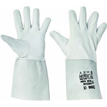 Celokožené rukavice z lícovej kozinky s 15 cm širokou manžetou z hovädzej štiepenky Certifikát: zváračské práce - typ B
