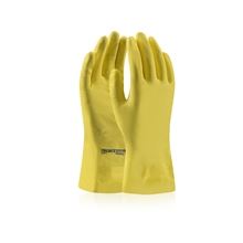 Latexové, upratovacie rukavice pre domácnosť Velúrová úprava vnútorného povrchu Protišmykové štruktúry na dlani a prstoch Dĺžka: 30 cm Množstvo v originálnom balení 12 párov EN 420