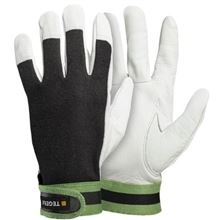Základná kožená rukavice z lícovej kozinky a bavlny/polyesteru má zosilnené končeky prstov a je vhodná pre mnoho typov montážnych prác. Suchý zips udržuje rukavicu na mieste a zabraňuje vniknutiu nečistôt.
