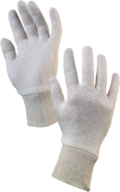 Ochranné pracovné rukavice kategórie CE 1 z režného bavlneného úpletu, pružná manžeta.
