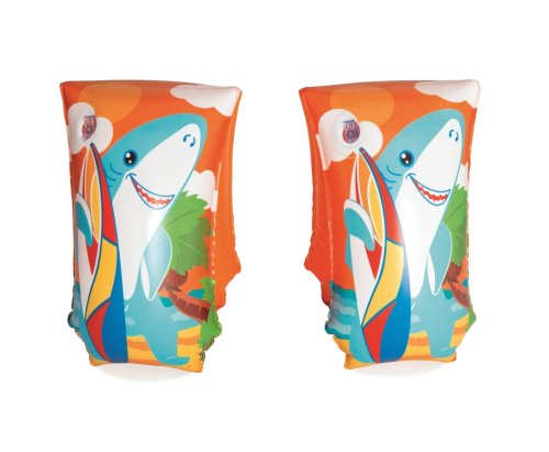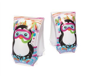 Nafukovacie rukávniky s veselým designom pre deti od 5 do 12 rokov o veľkosti 30×15 cm.