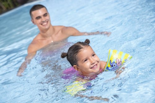 V praktických situáciách rukávy umožňujú deťom zlepšiť sebavedomie vo vode a postupne si osvojiť základné plavecké schopnosti. V kombinácii s veselým motívom Stitch a jasnými farbami sú rukávy atraktívnym doplnkom, ktorý deti motivuje k aktívnemu pohybu a bezpečnej zábave vo vode. Vďaka svojmu kompaktnému rozmeru a ľahkej konštrukcii sú ľahko prenosné a ideálne pre vonkajšie aktivity pri bazéne alebo na kúpalisku.