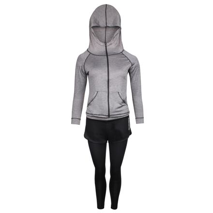 Súprava dámskeho športového oblečenia Runner 5W fitness set sa skladá z piatich kusov - športové podprsenky, tričká s krátkym rukávom, mikiny s kapucňou so zapínaním na zips, šortiek a dlhých legín. Podprsenka má vykrojené ramienka na chrbte a vyberateľné košíčky. Šortky majú všité priliehavé kraťasky, vďaka ktorým sa nemusíte pri pohybe nijako obmedzovať. Celý set oblečenia je z nepriehľadnej tkaniny av jednotnej farbe, takže spolu kúsky krásne ladia. Športové oblečenie môžete využiť takmer na všetky športové aktivity, od fitness cez behanie až po jogu alebo pilates. Zloženie: 95% polyester, 5% elastan. Perte maximálne na 30 °C s podobnými farbami. Veľkosť S: Podprsenka obvod pod prsiami: 60-70 cm, odporúčaná veľkosť: 70A/70B Tričko dĺžka: 53 cm, obvod hrudníka: 82 cm, šírka ramien: 40 cm Mikina dĺžka: 55 cm, obvod hrudníka: 88 cm, šírka ramien : 41 cm Šortky dĺžka: 31 cm, obvod pása: 64-70 cm, obvod bokov: 78 cm Legíny dĺžka: 85 cm, obvod pása: 64-70 cm, obvod bokov: 78 cm Veľkosť M: Podprsenka obvod pod prsiami: 64 -74 cm, odporúčaná veľkosť: 70C/70D/75A/75B Tričko dĺžka: 55 cm, obvod hrudníka: 86 cm, šírka ramien: 41 cm Mikina dĺžka: 57 cm, obvod hrudníka: 96 cm, šírka ramien: 42 cm Šortky dĺžka : 31 cm, obvod pása: 66-74 cm, obvod bokov: 82 cm Legíny dĺžka: 88 cm, obvod pása: 66-76 cm, obvod bokov: 82 cm Veľkosť L: Podprsenka obvod pod prsiami: 68-78 cm, odporúčaná veľkosť: 75C/75D/80A/80B Tričko dĺžka: 57 cm, obvod hrudníka: 90 cm, šírka ramien: 42 cm Mikina dĺžka: 59 cm, obvod hrudníka: 96 cm, šírka ramien: 43 cm Šortky dĺžka: 30 cm, obvod pása: 68-78 cm, obvod bokov: 84 cm Legíny dĺžka: 89 cm, obvod pása: 68-80 cm, obvod bokov: 84 cm Veľkosť XL: Podprsenka obvod pod prsiami: 72-82 cm, odporúčaná veľkosť: 80C/80D /85A/85B Tričko dĺžka: 59 cm, obvod hrudníka: 94 cm, šírka ramien: 43 cm Mikina dĺžka: 61 cm, obvod hrudníka: 101 cm, šírka ramien: 44 cm Šortky dĺžka: 31 cm, obvod pása: 70-80 cm, obvod bokov: 88 cm Legíny dĺžka: 89 cm, obvod pása: 70-82 cm, obvod bokov: 88 cm Veľkosť XXL: Podprsenka obvod pod prsiami: 76-86 cm, odporúčaná veľkosť: 85C/85D/90A/90B Tričko dĺžka: 61 cm, obvod hrudníka: 98 cm, šírka ramien: 43 cm Mikina dĺžka: 63 cm, obvod hrudníka: 105 cm, šírka ramien: 45 cm Šortky dĺžka: 33 cm, obvod pása: 72-82 cm, obvod bokov: 90 cm Legíny dĺžka: 90 cm, obvod pása: 72-84 cm, obvod bokov: 90 cm