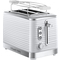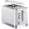 Prémiový hriankovač na 2 krajce s vysokým leskom a chrómovými prvkami v dizajne textúrovaných vlniek Nastaviteľný stupeň opečenia Funkcia vysokého vysunutia pečiva Modro podsvietené tlačidlá pre funkcie prerušenia, rozpekania a rozmrazenia Odnímateľná tácka na omrvinky Mriežka na ohrievanie pečiva