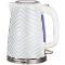 Textúrovaný dizajn s prvkami z brúsenej nerezovej ocele Príkon 2 400 W Kapacita 1,7 l Zdokonalený lievik Ukazovateľ množstva vody Funkcia zóny rýchleho varu Ukazovatele na 1/2/3 šálky 360° základňa s úložným priestorom pre kábel Stlačením otvárateľný veko 61 Vnútorné modré osvetlenie Uvarí jednu šálku za 54 sekúnd Ušetrí až 66 % energie