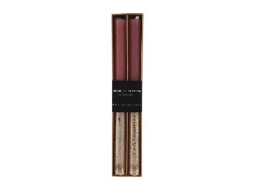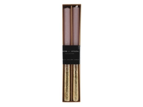 Rustikálne sviečky v sade po dvoch kusoch potešia každého milovníka jedinečných dekorácií. Každá sviečka má rozmer 21x250 mm a je ozdobená elegantnou metalickou povrchovou úpravou od polovice sviečky. Sú ideálne do svietnikov, na sviatočný stôl, oslavy či romantické večery. Svojím dizajnom zaujmú na prvý pohľad a pomôžu vytvoriť príjemnú atmosféru v každej miestnosti. Vhodné aj ako vkusný darček.