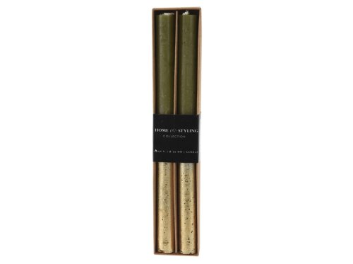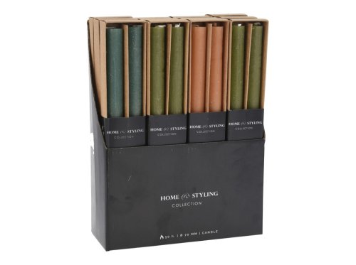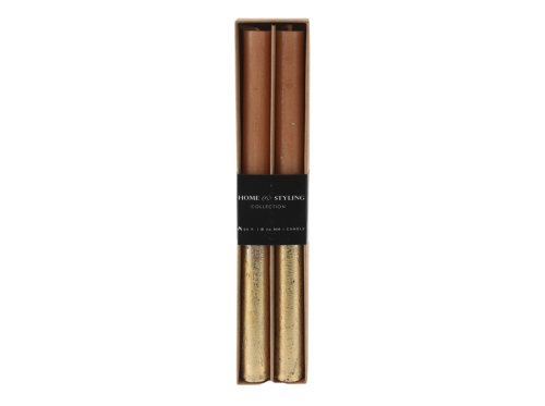 Rustikálne kónické sviečky s jemným metalickým leskom dodajú slávnostnú atmosféru každému interiéru. Balenie obsahuje 2 ks dlhých sviečok s rozmermi 21x250 mm. Vhodné do klasických svietnikov, pre sviatočnú tabuľu alebo ako súčasť darčekového balíčka. Mix elegantných farieb.