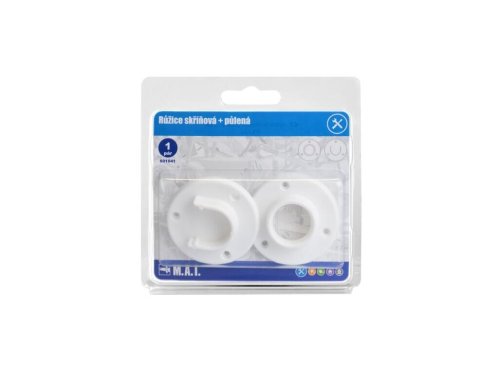 Set celej a polenej skriňovej ružice, ktorá slúži na upevnenie záclonových a šatníkových tyčí do otvorov a skríň.