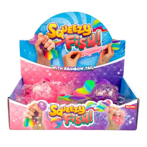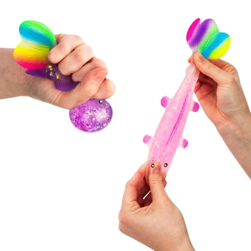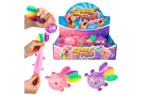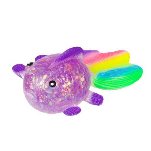 Zábavná antistresová rybka s trblietavým efektom a farebným dúhovým chvostíkom. Stačí ju stlačiť a sledovať, ako sa rozťahuje a vracia späť do pôvodného tvaru. Ideálna hračka na uvoľnenie napätia i zábavu. Mäkký a pružný materiál príjemne padne do ruky a láka na opakované stláčanie.