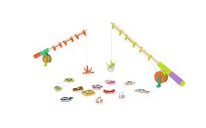 Farebné rybičky sú vyrobené z kvalitného dreva, bezpečne zaoblené a natreté nezávadnými farbami. Hračka je ideálna pre hru doma, v škôlke aj na cestách.