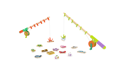 Chyť si svoju prvú rybu! Drevená hračka rybárčenia prináša deťom zábavu aj učenie v jednom. Pomocou magnetického prútu lovia farebné rybičky, a pritom trénujú jemnú motoriku, koordináciu oko-ruka aj trpezlivosť.