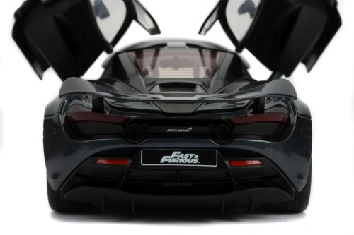 Kovový model auta Shawa McLaren 720S v mierke 1:24 z filmu Rýchlo a zbesilo. Na voľnobeh, otváracie dvere, kufor a kapota. Veľkosť 20,5 cm.