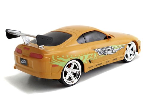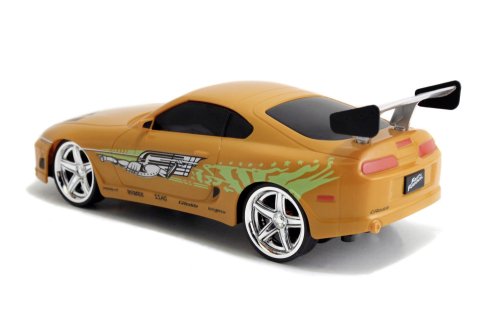 Brianovo auto Toyota Supra na diaľkové ovládanie z akčného filmu Rýchlo a zbesilo. 2 kanály (jazdia vpred, vzad, vľavo a vpravo). Frekvencia 2,4 GHz. Turbo funkcie. Farba oranžová. V mierke 1:24.