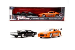 Kovové modely áut z filmu Rýchlo a zbesilo, Brianova Toyota Supra a Domov 1970 Dodge Charger v mierke 1:32, gumové pneumatiky, otváracie časti, voľnobeh.