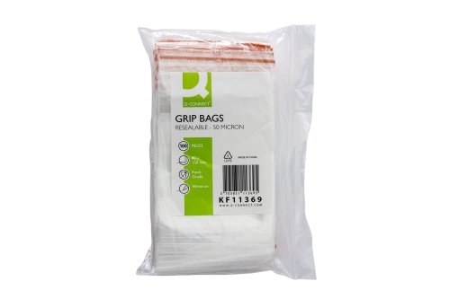 • Ľahko uzatvárateľné transparentné vrecká s bielymi pruhmi našej značky Q-Connect, ideálne na skladovanie drobností, malých kancelárskych potrieb, skrutiek, súčiastok alebo aj potravín