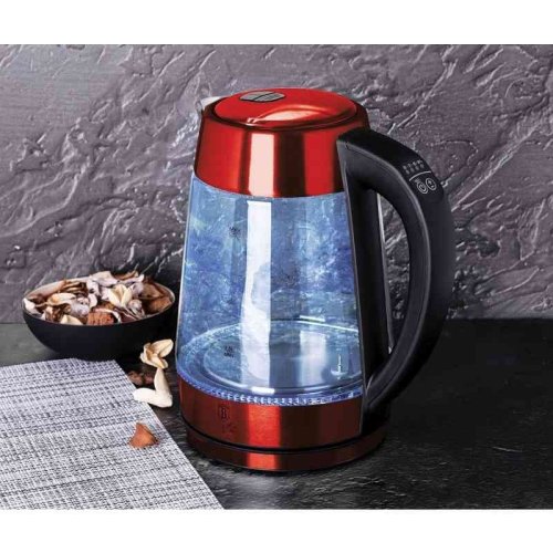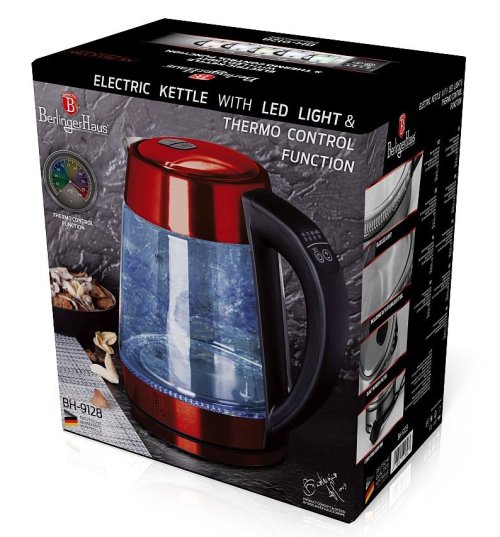 - Designová presklená rýchlovarná kanvica Burgundy Metallic od značky BerlingerHaus - prevedenie z nerezovej ocele a borosilikátového skla odolného proti žiaru - kanvica je pri prevádzke osvetlená modrým LED ...