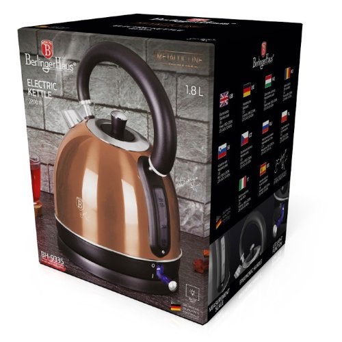 Materiál tohto produktu je: nerezová oceľ - príkon: 2200 w - napätie: 220-240 v - Objem tohto produktu je: 1,7 l - modré ľad podsvietenie spínacieho tlačidla, keď je kanvica v prevádzke - nerezové veko - 360 ° otočný podstavec - automatické vypnutie - odmerná stupnica - nerezové dno -