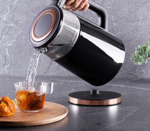 Kolekcia Black Rose je elegantný a moderný rad, ktorý kombinuje čiernu a striebornú farbu, aby dokonale zapadol do moderných domácností. Dvojplášťová rýchlovarná kanvica (1800 W) je vyrobená z vysoko kvalitných materiálov, takže je odolná a má dlhú životnosť. Objem 1,7 litra umožňuje uvariť väčšie množstvo vody naraz, takže je ideálny na posedenie s rodinou alebo priateľmi. Kanvica pracuje na 220-240 V, 50/60 Hz a poskytuje výkon 1800 W, takže varí vodu rýchlo a efektívne. Elegantná kombinácia čiernej a striebornej farby je charakteristickým rysom radu Black Rose Collection, ktorý vyzerá skvele v každej kuchyni.